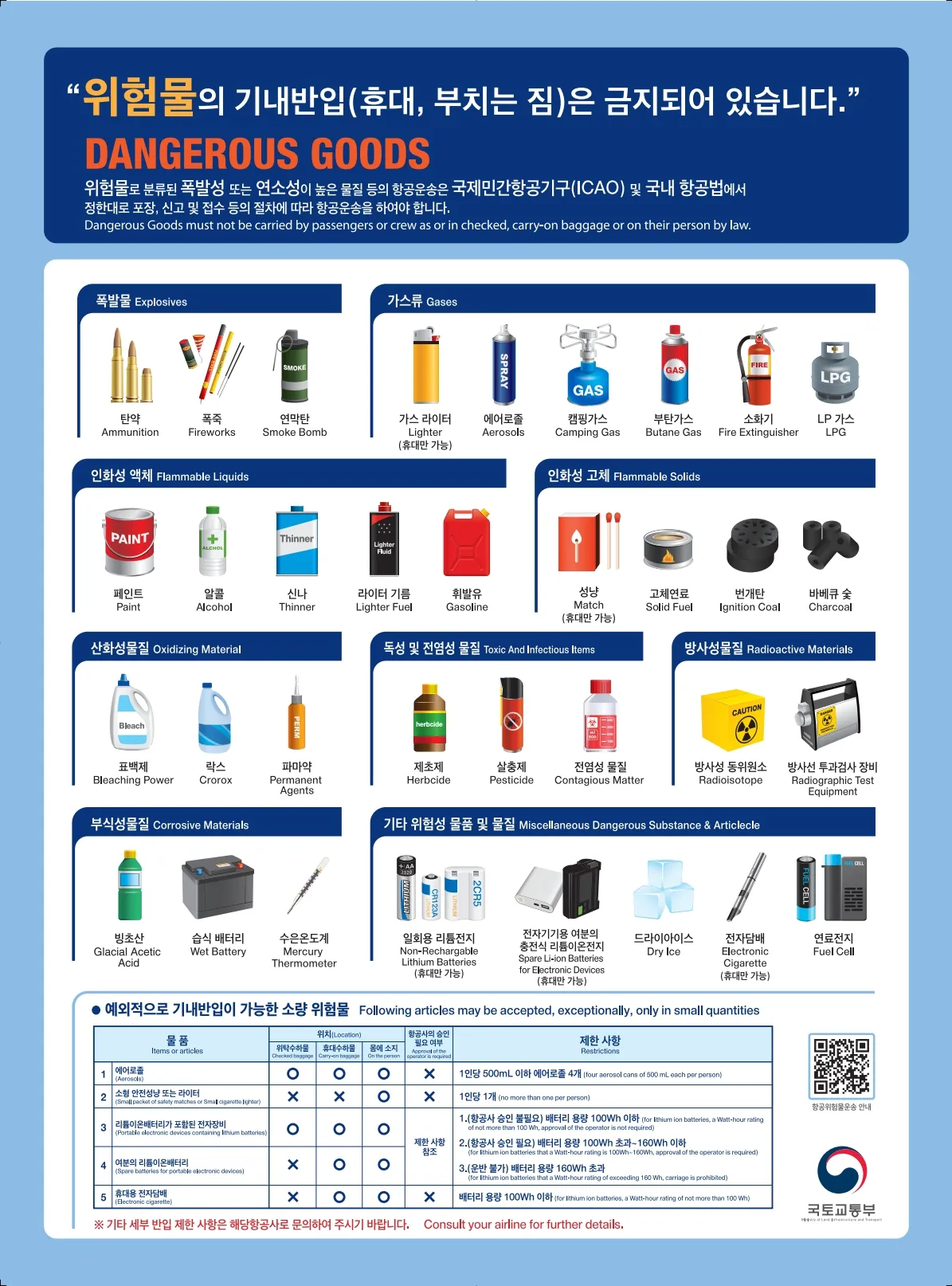 1. 객실(기내) X / 위탁수하물 X <폭발성·인화성·인화성·유독성 물질>