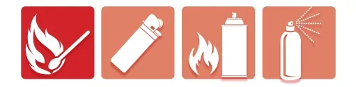 부타가스, 성냥, 라이터 인화성 가스와 휘발유·페인트 등 인화성 액체, 70% 이상의 알코올성 음료 등
