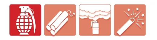 폭죽, 뇌관, 지뢰, 수류탄, 다이너마이트, 화약류, 연막탄, 조명탄, 신관, 도화선, 발파캡 등 폭발장치