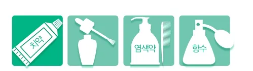 콘택트렌즈용품, 치약, 화장품, 염색약, 파마약, 목욕용품, 의료용 소독 알코올, 소염제, 내복약, 외용연고 등