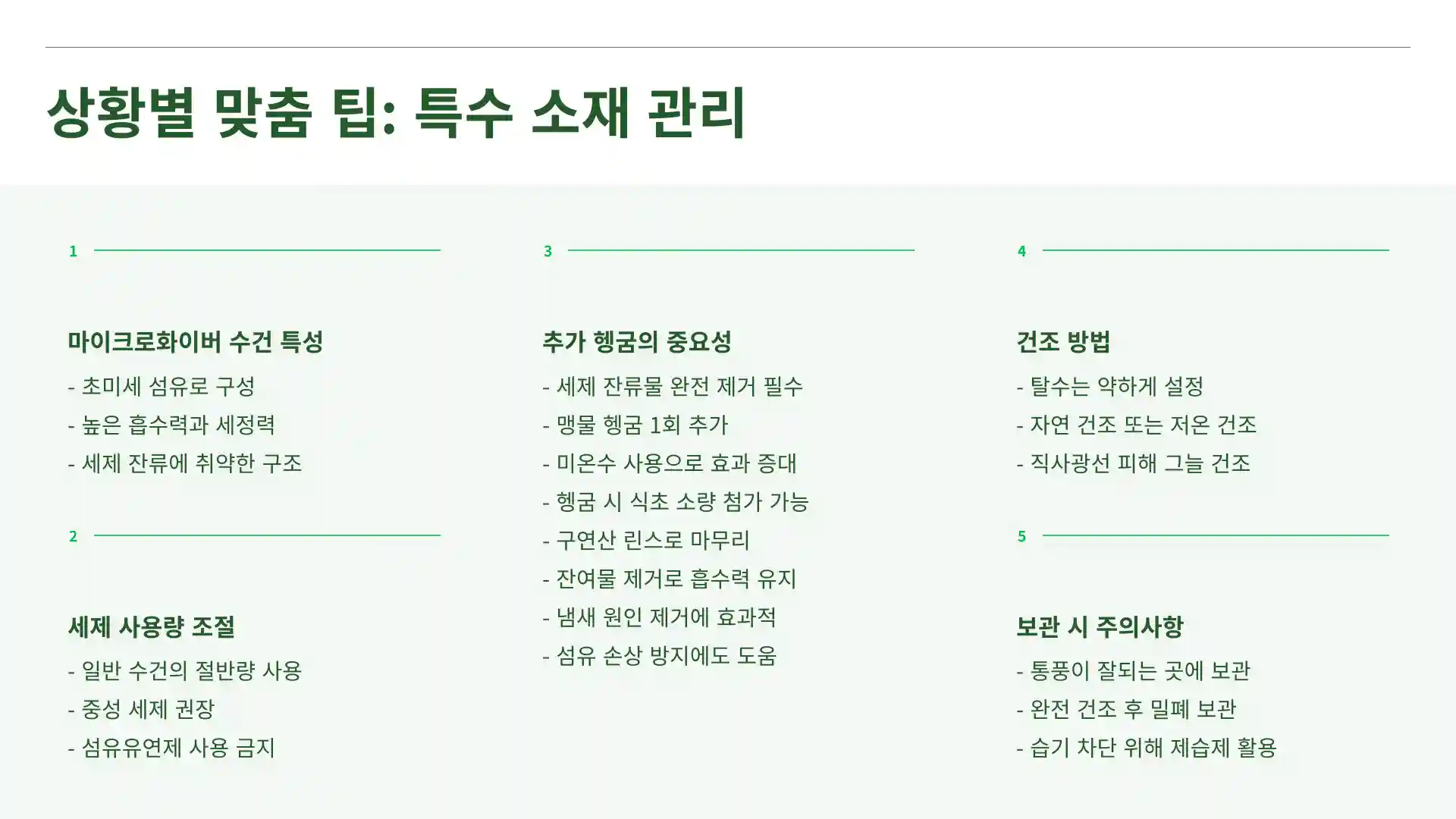 2) 마이크로화이버 수건 관리