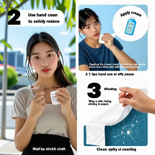 - 원리 : 핸드크림에 포함된 오일 성분은 끈끈이를 부드럽게 하여 제거 과정을 용이하게 합니다.